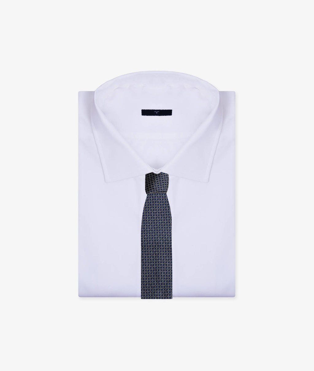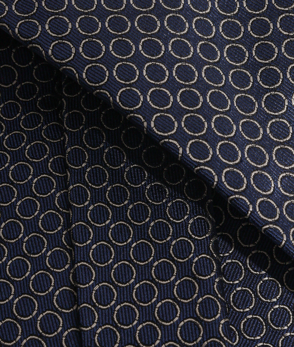 Su una base blu profondo, la luminosa fantasia argento evoca il perlage di un vino pregiato, creando un dinamismo visivo unico e un effetto effervescente. Questa cravatta da uomo è l'accessorio perfetto per chi desidera distinguersi, ideale per valorizzare un abito formale o un look business con un tocco di luce.