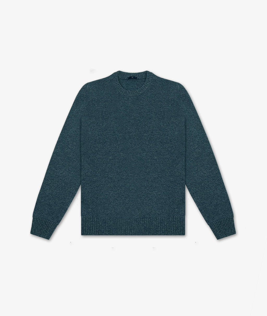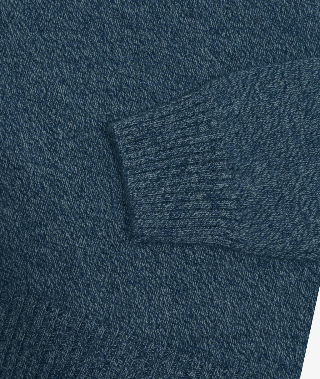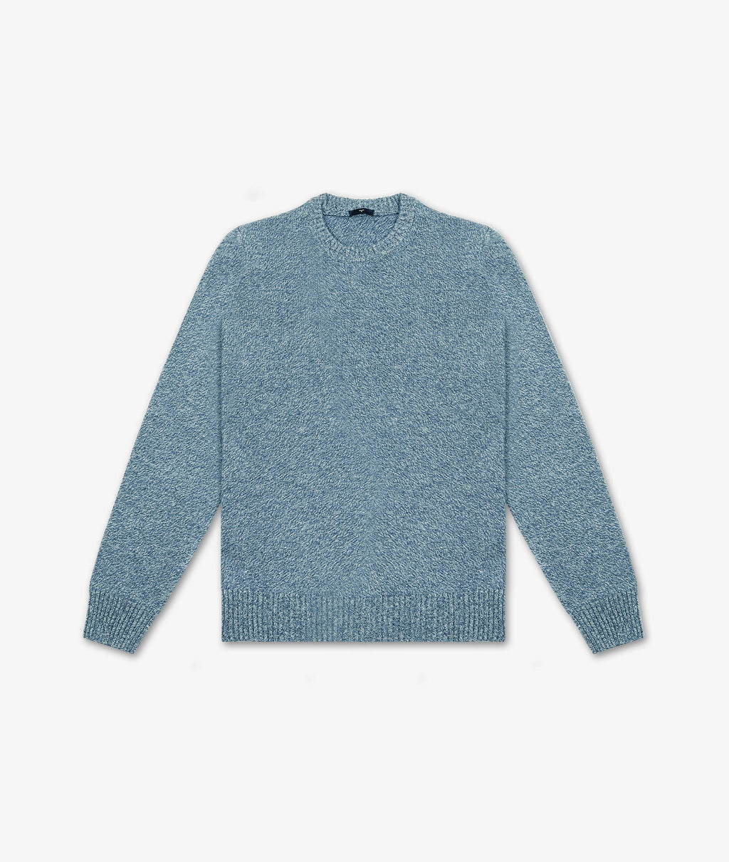 La ricercata lavorazione mouliné conferisce al colore una profondità vibrante, una fusione di nuance che arricchisce la maglia di un'eleganza non statica.