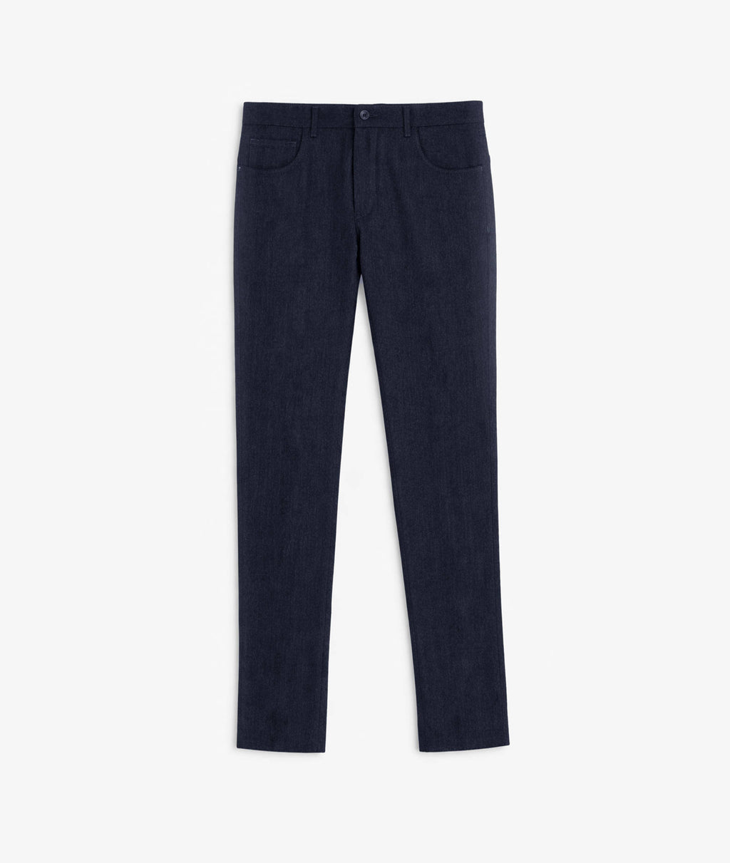 Questo pantalone unisce la praticità di un modello jeans alla lussuosa morbidezza della flanella in pura lana 100%, garantendo comfort e calore senza pari per le stagioni più fresche. La vestibilità regular fit assicura una silhouette elegante e rilassata, perfetta per un look versatile che spazia dal casual evoluto allo smart-casual. Il capo è impreziosito da un dettaglio artigianale distintivo, il ricamo del gabbiano fatto a mano che decora con discrezione le tasche posteriori, un sigillo di qualità e tradizione sartoriale italiana.